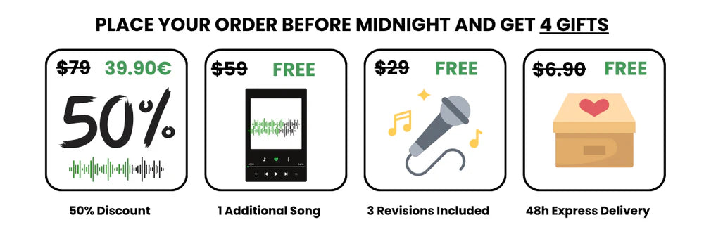To order your personalized song, simply fill out our questionnaire, share your story, and provide the details you’d like us to include. Then proceed with payment.